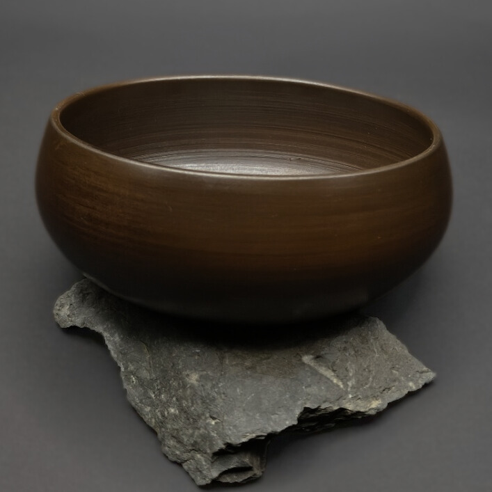 Écuelle en sigillée brune, finition mate satinée. Traces de tournage visibles. Pièce unique