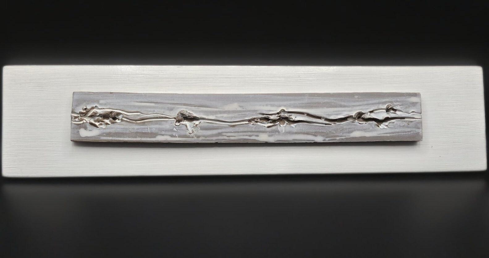 Un fil de matière traverse la surface, comme une veine ou une racine.